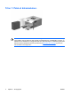 Trinn 3: Koble til eksternt utstyr. Koble til kablene for skjerm, mus, tastatur og nettverk. MERK: Arrangement og antall kontakter kan variere etter modell.