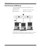 Comunicaciones por red Estructura de red Ethernet Todas las redes Ethernet incluyen alguna combinación de los siguientes elementos: 1 Cable Ethernet 3 Cables de caída de voltaje 2 Documentación 4 Estaciones de trabajo Estructura de red Ethernet Para identificar el conector de red, consulte la Guía de referencia del hardware incluida en el CD de documentación y diagnósticos. 1–2 www.hp.
