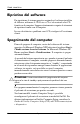 Guida introduttiva Ripristino del software Per ripristinare il sistema operativo originale e il software installato di fabbrica, utilizzare il CD Restore Plus! ed eventuali altri CD forniti con il computer. Leggere attentamente e seguire le istruzioni di ripristino fornite con il computer. In caso di richieste o problemi con il CD, rivolgersi all’assistenza clienti. Spegnimento del computer Prima di spegnere il computer, uscire dal software del sistema operativo.