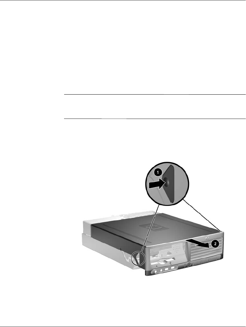 faça deslizar para a frente a tampa do computador até ela parar 2 e,