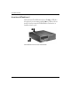 การอัพเกรดฮารดแวร การติดตัง้ ไดรฟออปติคัลที่เปนไดรฟเสริม เมื่อตองการติดตั้งไดรฟออปติคัลที่เปนไดรฟเสริม: 1. หากคุณล็อคเครื่องดวยล็อค Smart Cover ใหเริ่มตนระบบของ คอมพิวเตอรอีกครั้ง และเขาสูโปรแกรมการตั้งคาคอมพิวเตอรเพื่อปลดล็อค 2. ปดเครื่องคอมพิวเตอรอยางเหมาะสมโดยสั่งปดจากระบบปฏิบัติการ แลวปด อุปกรณภายนอกทั้งหมด 3. ถอดสายไฟออกจากเตารับไฟฟา และถอดสายออกจากอุปกรณภายนอก ทั้งหมด 4. ถอดฝาครอบเครื่องคอมพิวเตอร โปรดดูที่ “การถอดฝาครอบเครื่อง คอมพิวเตอร” 5.