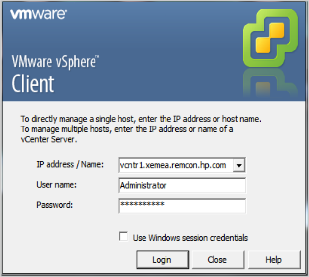 2. Log on to the vSphere Client. Use any Windows account that has administrator rights.