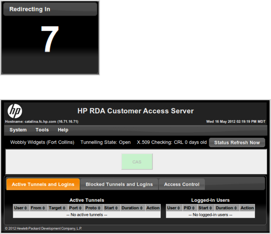 6. When the countdown reaches zero, your browser is automatically redirected to the new vCAS