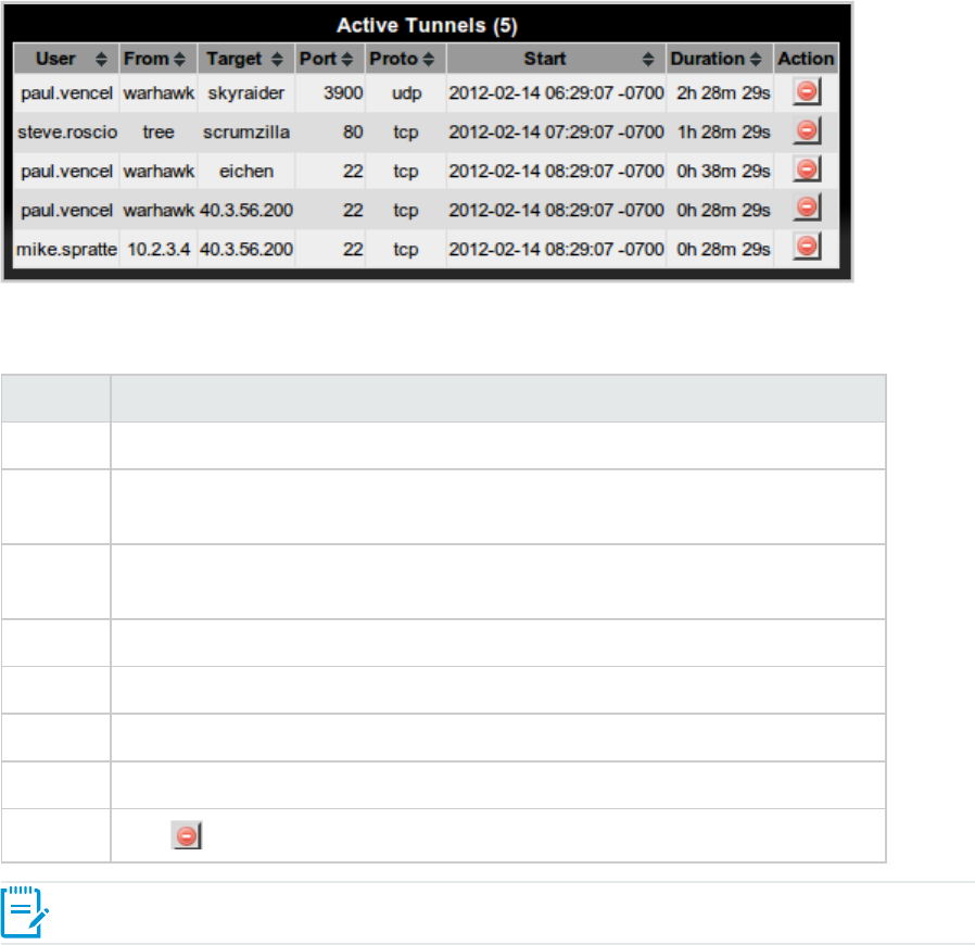 connection appears as an active tunnel on your vCAS. Each active tunnel displays on the Active Tunnels