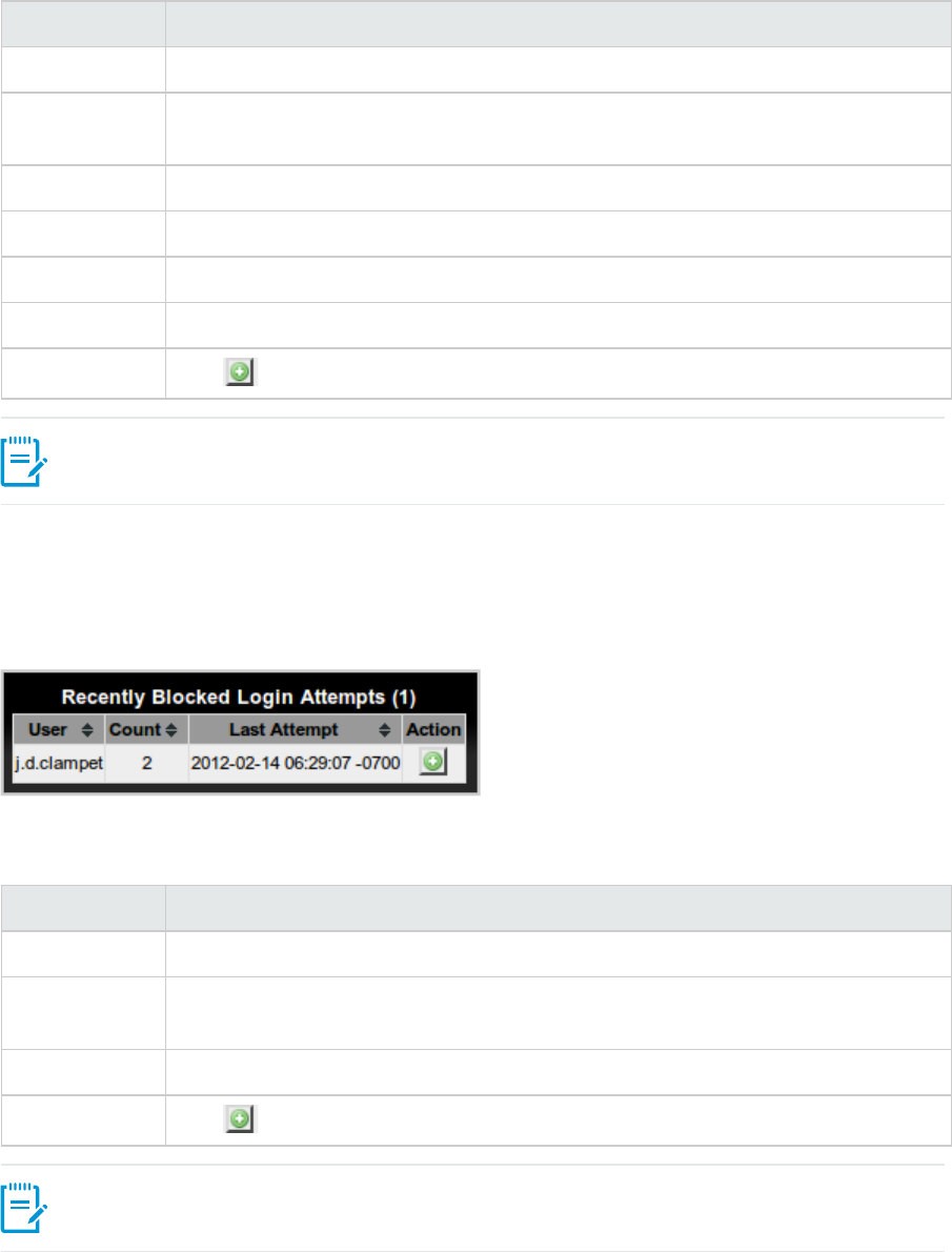 Blocked user login attempts display in rows in the Recently Blocked Login Attempts table.