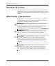 Actualizaciones de hardware Funciones de servicio El ordenador microtorre incluye funciones que facilitan las tareas de actualización y servicio. Necesitará un destornillador Torx T-15 para muchos de los procedimientos de instalación que se explican en este capítulo. Advertencias y precauciones Antes de llevar a cabo cualquier tarea de actualización, asegúrese de leer detenidamente todas las instrucciones, medidas de precaución y advertencias aplicables incluidas en esta guía.