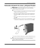 Sustitución de la batería Ä PRECAUCIÓN: la electricidad estática puede dañar los componentes electrónicos del equipo o de los componentes opcionales. Antes de comenzar estos procedimientos, descárguese de electricidad estática tocando un objeto metálico que esté conectado a tierra. 1. Apague correctamente el ordenador utilizando la opción del sistema operativo y apague todos los dispositivos externos. Desenchufe el cable de alimentación de la toma eléctrica y desconecte todos los dispositivos externos.