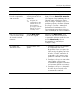 Resolução de problemas Problema Ecrã em branco (sem vídeo). (continuação) Causa Solução Pode estar instalado um utilitário de limpeza do ecrã ou as funcionalidades de poupança de energia estão activadas. Prima qualquer tecla ou clique no botão do rato e, se estiver definida, escreva a palavra-passe. O computador está no modo de suspensão. Prima o botão de alimentação para sair do modo de suspensão.
