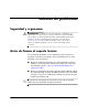 Solución de problemas Seguridad y ergonomía Å ADVERTENCIA: la utilización incorrecta del equipo o trabajar en un entorno que no resulte seguro y cómodo puede provocar incomodidad o lesiones graves. Consulte la publicación Guía sobre seguridad y ergonomía incluida en el CD de documentación y disponible en el sitio Web www.hp.com/ergo, si desea más información sobre cómo elegir un espacio de trabajo apropiado y crear un entorno de trabajo seguro y cómodo.