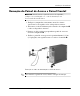 Atualizações de Hardware estiver instalando uma unidade no compartimento inferior para ✎ Seunidade de 5,25 polegadas, remova a proteção de metal que cobre o compartimento pressionando a guia prata no lado esquerdo do chassi, em seguida remova a proteção da parte frontal do chassi. um total de oito parafusos guia/retenção adicionais na parte ✎ Há frontal do chassi atrás do painel frontal. Quatro parafusos com rosca padrão 6-32 e quatro com roscas métricas M3.