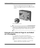 Actualizaciones de Hardware 5. Abra ambos retenes del socket del módulo de memoria 1, e inserte el módulo de memoria en el socket 2. Instalación de un módulo DIMM módulo de memoria se puede instalar de una sola manera. Haga ✎ Elcoincidir la muesca del módulo con la lengüeta del socket de memoria. 6. Empuje el módulo hacia adentro del socket, asegurándose de que esté totalmente insertado y debidamente encajado. Asegúrese que los retenes estén en la posición cerrada 3. 7.