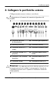Guida introduttiva ■ Ä Se il sistema dispone di più sorgenti video (integrata, schede PCI o PCI-Express) installate (PCI-Express solo su determinati modelli) e di un unico monitor, il monitor deve essere collegato al connettore corrispondente sulla sorgente selezionata come scheda VGA principale. Durante l’avvio, gli altri connettori del monitor sono disabilitati; se il monitor è collegato ad una di queste porte, non funziona. È possibile selezionare la sorgente VGA predefinita in Computer Setup.