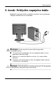 Hitra namestitev 5. korak: Priključite napajalne kable Priključite napajalne kable in kabel za monitor, kot je prikazano. Vklopite monitor in nato računalnik. Å Ä OPOZORILO: Da bi zmanjšali možnost električnega udara in poškodbe opreme: ■ Ne spreminjajte ozemljenega vtiča na napajalnem kablu, saj ima pomembno varnostno vlogo. ■ Vtaknite vtič v ozemljeno električno vtičnico, ki je vedno zlahka dostopna.