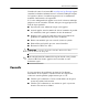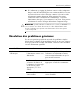 Résolution des problèmes Problème L’affichage de la date et de l’heure de l’ordinateur est incorrect. Cause La pile de l’horloge temps réel (RTC) doit éventuellement être remplacée. ✎ Le fait de brancher l’ordinateur sur une prise secteur prolonge la durée de vie de la pile HTR. Les touches de direction La touche Verr num est du pavé numérique ne peut-être enclenchée. déplacent pas le curseur. Vous observez de faibles performances. Le processeur est chaud.