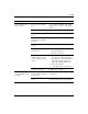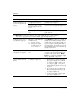 문제 해결 문제 성능이 기대에 미치지 못합니다(계속). 원인 해결 방법 하드 드라이브가 꽉 찼습 니다. 하드 드라이브의 데이터를 다른 장치로 이동하여 하드 드라이브의 여유 공간을 늘립니다. 메모리가 부족합니다. 메모리를 추가합니다. 하드 드라이브가 조각나 있 습니다. 하드 드라이브 조각 모음을 실행합니다. 이전에 액세스한 프로그램에 사용된 메모리가 해제되지 않았습니다. 컴퓨터를 다시 시작합니다. 하드 드라이브에 바이러스가 있습니다. 바이러스 백신 프로그램을 실행합니다. 너무 많은 응용프로그램이 실행 중입니다. 1. 사용하지 않는 응용프로그램을 닫아 메모리를 확보합니다. 2. 메모리를 추가합니다. 일부 소프트웨어 응용프로 그램(특히 게임)은 그래픽 하위 시스템의 성능을 저하 시킵니다. 1. 현재 응용프로그램의 해상도를 낮추 거나 응용프로그램과 함께 제공된 설명서에서 응용프로그램의 매개 변 수를 조정하여 성능을 향상시키는 방법에 대한 제안을 참조하십시오. 2.