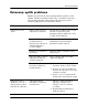 Rešavanje problema Rešavanje opštih problema Možda ćete moći lako da rešite manje probleme opisane u ovom odeljku. Ukoliko se problem i dalje javlja, a ne možete sami da ga rešite ili niste skloni da sami izvršite neku operaciju, pozovite ovlašćenog HP prodavca ili dobavljača usluga. Problem Računar neće da se uključi. Uzrok Rešenje Kablovi spoljnog izvora napajanja su iskopčani.