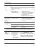 Solución de problemas Problema Causa Solución El cursor no se mueve al utilizar las teclas de flecha del teclado numérico. Es posible que la tecla Bloq Num esté activada. Se evidencia un bajo rendimiento. El procesador está caliente. Presione la tecla Bloq Num. Si desea utilizar las teclas de flecha, la luz de Bloq Num no debe estar encendida. Es posible desactivar (o activar) la tecla Bloq Num desde Computer Setup. 1. Asegúrese de que el flujo de aire hacia la computadora no esté obstruido.