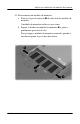 Adição ou substituição de módulos de memória 16. Recoloque o teclado em sua posição original. 17. Deslize as quatro travas do teclado para travá-lo.