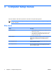 Table of contents 1 Starting Computer Setup 2 Using Computer Setup Navigating and selecting in Computer Setup ....................................................................................... 2 Restoring factory settings in Computer Setup ...................................................................................... 3 3 Computer Setup menus File menu ..............................................................................................................................................