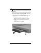 ExpressCard (kun på enkelte modeller) 3. Slik tar du ut et ExpressCard: a. Trykk på utløserknappen for ExpressCard-sporet 1. Knappen spretter ut slik at du kan løse ut kortet. b. Trykk én gang til på utløserknappen for å løse ut kortet. c. Trekk kortet ut av sporet 2.