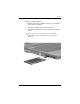 2 PC -kort Et PC-kort er en enhet på størrelse med et kredittkort, laget i henhold til spesifikasjonene til Personal Computer Memory Card International Association (PCMCIA). PC-kortsporet støtter: ■ 32-bits (CardBus) og 16-bits PC-kort. ■ Støtter Type I- og Type II-PC-kort. ✎ Kort for "zoomed video" og 12-V PC-kort støttes ikke. Sette inn et PC-kort Ä OBS: For å være sikker på at du kan benytte også andre PC-kort, installerer du kun den programvaren som er nødvendig for enheten.