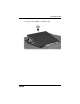 添加或更换内存模块 在扩展内存模块插槽中添加内存模块 要在扩展内存模块插槽中添加或更换内存模块,请执行以下 操作: 1. 保存您的工作并关闭所有打开的程序。 ✎ 当笔记本计算机处于睡眠状态或休眠模式时,必须先从 睡眠状态或休眠模式退出,然后才能关机。 2. 单击 Start (开始), Lock (锁定)按钮旁边的箭头, 然后单击 Shut Down (关机)。 3. 合上显示屏。 4. 断开所有与笔记本计算机相连的外接设备。 5. 将电源线插头从交流电源插座上拔下。 6. 翻转笔记本计算机,将其放在平整的表面上。 7. 从笔记本计算机中取出电池。 8.