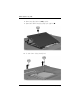 메모리 모듈 추가 또는 교체 18. 컴퓨터를 평평한 곳에 뒤집어 놓습니다. 19. 4개의 키보드 액세스 나사를 다시 조입니다.