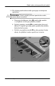 P idání nebo vým na pam ových modul Upgrade pam ového modulu ve slotu primárního pam ového modulu Postup při upgradu paměťového modulu ve slotu primárního paměťového modulu: 1. Uložte práci a ukončete všechny spuštěné programy. počítač v režimu spánku nebo hibernace, je nutné před ✎ Je-li jeho vypnutím nejdříve režim spánku nebo hibernace ukončit. 2. Klepněte na tlačítko Start, dále klepněte na šipku vedle tlačítka Zamknout a poté klepněte na tlačítko Vypnout. 3. Zavřete displej. 4.