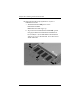Tilføjelse eller udskiftning af hukommelsesmoduler 16. Sæt tastaturet på plads. 17. Skyd de fire tastaturknapper til siden for at låse tastaturet.