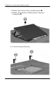 Dodawanie i wymienianie modułów pami ci 8. Poluzuj wkręt osłony komory modułu pamięci 1. 9. Podnieś osłonę komory modułu pamięci i zdejmij ją z komputera 2. 10. Usuń dwa wkręty klawiatury.