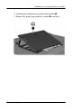Pridávanie a výmena pamä ových modulov 8. Odskrutkujte skrutku krytu pamäťového modulu 1. 9. Snímte kryt pozície pre pamäťový modul 2 z počítača. 10. Odskrutkujte dve skrutky klávesnice.
