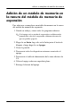 Adición o reemplazo de módulos de memoria Adición de un módulo de memoria en la ranura del módulo de memoria de expansión Para adicionar o reemplazar un módulo de memoria en la ranura del módulo de memoria de expansión: 1. Guarde su trabajo y cierre todos los programas abiertos. el equipo está en estado de suspensión o en hibernación, ✎ Siprimero debe salir de la suspensión o hibernación antes de que sea posible apagarlo. 2.