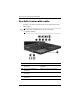 Hardware per le funzionalità multimediali Uso delle funzionalità audio Le figure e le tabelle seguenti descrivono le funzionalità audio del computer. riferimento all'illustrazione che più corrisponde ✎ Fare al computer utilizzato. Componente Descrizione 1 Spia di disattivazione Accesa: il volume del computer viene disattivato. del volume 2 Pulsante di disattivazione Disattiva il volume del computer. del volume 3 Pulsante di diminuzione Diminuisce il volume del computer.