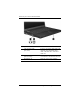 Hardware per le funzionalità multimediali Uso delle funzionalità audio Le figure e le tabelle seguenti descrivono le funzionalità audio del computer. riferimento all'illustrazione che più corrisponde ✎ Fare al computer utilizzato. Componente Descrizione 1 Spia di disattivazione Accesa: il volume del computer viene disattivato. del volume 2 Pulsante di disattivazione Disattiva il volume del computer. del volume 3 Pulsante di diminuzione Diminuisce il volume del computer.