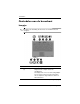 Onderdelen Onderdeel Beschrijving 3 Schuifzone van het touchpad Hiermee schuift u de weergave in een venster op het beeldscherm omhoog of omlaag. 4 Rechterknop van het touchpad* Deze knop heeft dezelfde functie als de rechterknop op een externe muis. *In deze tabel worden de standaardinstellingen beschreven. Als u voorkeuren voor het touchpad wilt weergeven en wijzigen, selecteert u Start > Configuratiescherm > Printers en andere hardware > Muis.