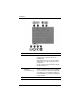 Onderdelen Onderdeel Beschrijving 2 Beeldschermschakelaar Hiermee wordt de standbystand geactiveerd wanneer u het beeldscherm sluit terwijl de computer aanstaat. 3 Knop voor draadloze communicatie* Met deze knop kunt u de voorziening voor draadloze communicatie in- en uitschakelen, maar geen draadloze verbinding tot stand brengen. u een draadloze verbinding tot stand wilt brengen, moet er al ✎ Als een draadloos netwerk zijn ingesteld. *In deze tabel worden de standaardinstellingen beschreven.