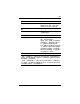 部件 组件 1 说明 电源按钮 如果笔记本计算机处于下列状态,该按钮则 分别起到相应的作用: ■ 关闭状态,按下此按钮可打开笔记本计算 机。 ■ 开启状态,按下此按钮可进入休眠模式。 ■ 等待状态,按下此按钮可退出等待模式。 ■ 休眠状态,按下此按钮可退出休眠模式。 如果笔记本计算机已停止响应且无法按照 Windows 关机步骤将其关闭,可按住电源按 钮至少 5 秒钟以关闭笔记本计算机。 2 显示屏开关 如果在笔记本计算机开启时合上显示屏,将 启动等待模式。 3 无线设备按钮 * 启用或禁用无线功能,但不建立无线连接。 ✎ 要建立无线连接,必须设有无线网络。 * 此表介绍的是默认设置。有关更改默认设置的信息,请参阅位于 Help and Support Center (帮助和支持中心)的用户指南。 1–10 笔记本计算机概览