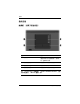 部件 后部组件 ✎ 请参阅与您的笔记本计算机最相近的插图。 组件 1 说明 安全保护缆锁槽口 Ä 在笔记本计算机上连接安全保护缆锁选 件。 安全保护缆锁只能作为一种防范措施,并不能防止笔记本计 算机被盗或使用不当。 2 电源连接器 连接交流电源适配器。 3 并行端口 连接可选打印机。 4 S-Video 输出插孔 连接可选的 S-Video 设备,例如电视、 VCR、可携式摄像机、高架投影机或视 频捕获卡。 笔记本计算机概览 1–15