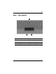 部件 按键 ✎ 您的笔记本计算机的外观可能与本章中提供的插图稍有不 同。 组件 说明 1 esc 键 与 fn 键组合使用时显示系统信息。 2 fn 键 与功能键或 esc 键组合使用时,执行常 用的系统功能。 3 Windows 徽标键 显示 Windows Start (开始)菜单。 4 Windows 应用程序键 显示指针所指项目的快捷菜单。 5 嵌入式数字小键盘按键 使用方法类似于外接数字小键盘按键的 使用方法。 6 功能键 与 fn 键组合使用时,执行常用的系统 功能。 ✎ 有关每个热键的说明,请参阅 “热键速查表”中的表。 笔记本计算机概览 1–11