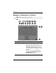 Komponenter Komponent Beskrivning 1 Strömknappen När datorn är avstängd sätter du på den genom att trycka på strömknappen. Om datorn har slutat svara och det inte går att använda avstängningsprocedurerna i Windows®, stänger du av datorn genom att trycka och hålla ned strömknappen i minst 5 sekunder. Du kan läsa mer om ströminställningar genom att välja Start > Kontrollpanelen > Prestanda och underhåll > Energialternativ.
