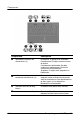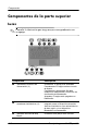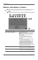 Componentes Componente Descripción 4 Enciende y apaga la funcionalidad inalámbrica, pero no crea una conexión inalámbrica. Botón de conexiones inalámbricas* establecer una conexión inalámbrica, primero debe ser configurada ✎ Para una red inalámbrica. 5 Botón modo de Presentación Inicia el modo de Presentación. 6 Botón de silencio Silencia y restaura el sonido del equipo. 7 Botón de disminución de volumen Disminuye el volumen del equipo.