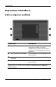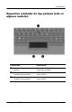 Componentes Dispositivos señaladores (sólo en algunos modelos) Componente Descripción 1 TouchPad* Mueve el puntero y selecciona o activa elementos en pantalla. Es posible configurarlo para realizar otras funciones del mouse como desplazamiento, selección y doble clic. 2 Botón izquierdo del TouchPad* Funciona igual que el botón izquierdo de un mouse externo. 3 Área de desplazamiento del TouchPad Se desplaza hacia arriba o hacia abajo.