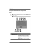 Componenti Componente Descrizione 5 Tastierino numerico incorporato Può essere utilizzato come i tasti di un tastierino numerico esterno. 6 Tasti funzione Eseguono le funzioni di sistema utilizzate più di frequente quando vengono premuti in combinazione con il tasto fn. riferimento alla tabella della sezione "Tabella di riferimento ✎ Fare dei tasti di scelta rapida" per una descrizione di ciascun tasto di scelta rapida.