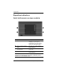 Componentes Componente Descrição 5 Permitem que o fluxo de ar arrefeça os componentes internos. Abertura de arrefecimento Ä Para impedir o sobreaquecimento, não obstrua as aberturas de arrefecimento. Utilize o computador somente em superfícies planas e duras. Não permita que outras superfícies rígidas, por exemplo, impressoras próximas opcionais, ou superfícies flexíveis, tais como colchões ou roupas, bloqueiem o fluxo de ar.