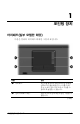 포인팅 장치 부품 설명 3 터치패드 스크롤 영역* 위 또는 아래로 스크롤합니다. 4 오른쪽 터치패드 버튼* 외장 마우스의 오른쪽 버튼과 같은 기능을 수행합니다. *이 표는 기본 설정을 나타냅니다. 터치패드 설정을 확인하거나 변경하려면 시작 > 제어판 > 프린터 및 기타 하드웨어 > 마우스를 차례로 선택합니다. 터치패드 설정에 대 한 자세한 내용은 "터치패드 기본 설정 지정"을 참조하십시오. 터치패드 사용 포인터를 이동하려면 터치패드 면에서 포인터를 이동하고자 하는 방향으로 손가락을 움직입니다. 외장 마우스의 버튼을 사용하듯이 터치패드 버튼을 사용합니다. 터치패드의 세로 스크롤 영역을 사 용하여 위/아래로 스크롤하려면 손가락을 선 위에서 위 또는 아래 로 움직입니다. 사용하여 포인터를 이동하려면 터치패드에서 손을 ✎ 터치패드를 뗀 후에 스크롤 영역으로 이동해야 합니다. 터치패드에서 손가 락을 떼지 않고 스크롤 영역으로 옮기면 스크롤 기능이 활성화 되지 않습니다.