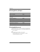 Hakemisto A akun varaus, tietojen näyttäminen 2–4 E esityspainike 2–7, 2–8, 2–9 esitystilan asetukset, määrittäminen 2–11 F Fn -näppäin 3–2 I kutsunäppäinkomennot akun varaustiedot 2–4 järjestelmätietojen tarkistaminen 2–5 näytön kirkkauden lisääminen 2–5 näytön kirkkauden vähentäminen 2–5 vaihtoehtoiset näytöt 2–3 valmiustilan käynnistäminen 2–2, 2–3 Info Center -painike 2–7 M J merkkivalot, numerolukitus 3–2 järjestelmätiedot, näyttäminen 2–5 K komposiittivideo 2–4 Kosketusalusta asetusten määri