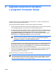 4 Výber predvolieb programu MultiBoot Program MultiBoot môžete použiť týmito spôsobmi: SKWW ● zmenou poradia spúšťania v programe Computer Setup môžete nastaviť nové poradie spúšťania, ktoré počítač použije pri každom zapnutí, ● keď sa pri štartovaní počítača v ľavom dolnom rohu obrazovky zobrazí hlásenie „F9 = Boot device menu“ (F9 = Ponuka spúštacieho zariadenia) môžete dynamicky vybrať spúšťacie zariadenie stlačením klávesu f9, ● na nastavenie variabilného poradia spúšťania môžete použiť nástroj