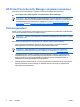 Windowsin uudelleenkäynnistyksen yhteydessä tapahtuvan käynnistystodennuksen käyttöön ottaminen tai käytöstä poistaminen Tällä asetuksella voit parantaa suojausta vaatimalla käyttäjiä määrittämään käynnistys-, TPM- tai sirukorttisalasana aina, kun Windows käynnistetään uudelleen. Voit ottaa käyttöön Windowsin uudelleenkäynnistyksen yhteydessä tapahtuvan käynnistystodennuksen tai poistaa sen käytöstä seuraavasti: 38 1. Valitse Käynnistä > Kaikki ohjelmat > HP ProtectTools Security Manager. 2.