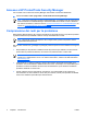 4. Immettere e confermare la password nelle caselle Immissione della password e Conferma password. 5. Fare clic su OK nella finestra di dialogo Password. 6. Fare clic su Applica, quindi fare clic su OK nella finestra di HP ProtectTools per salvare le modifiche. Modifica della password di configurazione Per modificare la password di configurazione di Impostazione del computer: 1. Selezionare Start > Tutti i programmi > HP ProtectTools Security Manager. 2.