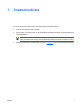 1 Snabbchecklista Om du får problem med datorn, följer du stegen nedan för att felsöka datorn: 1. Använd informationen i det här kapitlet. 2. Öppna Hjälp- och supportcenter för att få ytterligare information om datorn och för att få åtkomst till webbplatslänkar. OBS! Även om många kontroll- och reparationsverktyg kräver en Internet-anslutning, finns det många andra verktyg som kan hjälpa dig att lösa ett problem när datorn är offline. 3. SVWW Kontakta kundtjänst för ytterligare hjälp.